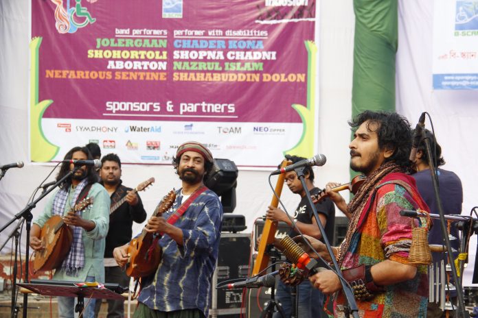 গত ৮ জানুয়ারি’১৫ ধানমন্ডির রবীন্দ্র সরোবরে অনুষ্ঠিত হয়ে গেল প্রতিবন্ধী মানুষের সমন্বয়য়ে উন্মুক্ত কনসার্ট। “চলুন, একিভূত সমাজ গড়ি” এই মূল প্রতিপাদ্যে কনসার্ট ফর ইনক্লুশন আয়োজনের উদ্যোগ নেয় প্রতিবন্ধী ব্যক্তিদের সংগঠন (ডিপিও) বাংলাদেশ সোসাইটি ফর দ্যা চেঞ্জ এ্যান্ড অ্যাডভোকেসি নেক্সাস (বি-স্ক্যান)। প্রতিবন্ধী মানুষের কন্ঠস্বর হিসেবে বি-স্ক্যান কর্তৃক প্রকাশিত ত্রৈমাসিক পত্রিকা অপরাজেয় এর দ্বিতীয় প্রতিষ্ঠা বার্ষিকী উপলক্ষে আয়োজন করা হয় এই উন্মুক্ত কনসার্টের।