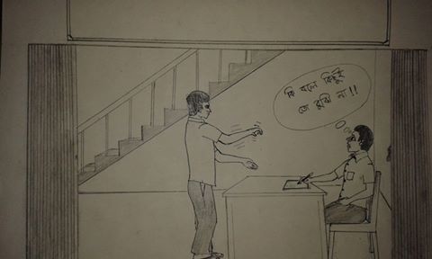 এই কার্টুন চিত্রে সরকারি কর্মকর্তার অসহায় চাউনি বলে দিচ্ছে তিনি এই ইশারা ভাষার কিছুই বুঝতে পারছেন না! সরকারি অফিস আদালত কোথাও ইশারা ভাষার প্রচলন শুরু হয়নি আজও। কিন্তু আমাদের দুঃখ সেবাদানকারী যে সকল সরকারি কার্যালয়ে গিয়ে প্রতিবন্ধী মানুষের বিষয়ে তথ্য পাওয়া যাবে, যেমন সমাজসেবা কার্যালয়; সেই তথ্যকেন্দ্রের কর্মকর্তাও ইশারা ভাষা বোঝেন না!