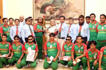 চ্যাম্পিয়ন হওয়ার গৌরব অর্জন করায় বাংলাদেশ জাতীয় ব্লাইন্ড ক্রিকেট দলকে সংবর্ধনা দিয়েছেন প্রধানমন্ত্রী শেখ হাসিনা। গত ১৮ সেপ্টেম্বর গণভবনে সংবর্ধনা প্রদানকালে শুভেচ্ছা উপহারসহ দলের প্রত্যেক খেলোয়াড়কে এক লক্ষ টাকা করে দেন প্রধানমন্ত্রী।