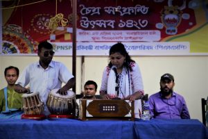 বিদায় চৈত্রসংক্রান্তি ১৪২৩ উপলক্ষে ৩০ চৈত্র, ১৪২৩; ছায়া ঢাকা শান্ত রোদেলা সেই বিকেলে পিএনএসপি প্রাঙ্গণে ভিড় জমিয়েছিল বিভিন্ন ধরনের প্রতিবন্ধী মানুষেরা। ভিড় জমিয়েছিল তারা গান শুনতে এবং শোনাতে। সেই সঙ্গে ছিল মুড়ি-মুড়কির ব্যবস্থা। যেন প্রাণের উৎসবে মেতে ওঠে সেদিন। বিকেল থেকে সন্ধ্যা গড়িয়ে রাত অবধি চলেছে এই আয়োজন। পিএনএসপি প্রাঙ্গণে আগামীতে আরও বেশি এ ধরনের আয়োজন করার অনুরোধ রয়েছে আমাদের প্রতিবন্ধী শিল্পীদের পক্ষ থেকে। সেদিন আমার সঙ্গে আরও গান গেয়েছিলেন টঙ্গী থেকে আগত শ্রদ্ধেয় আখতার হোসেন, প্রতিবন্ধী শিল্পীদের সাংস্কৃতিক সংগঠন সুর-সঙ্গী চক্রের সাধারণ সম্পাদক শাহাবুদ্দিন আহমেদ দোলনসহ শিল্পী মিলন হোসেন, শিরিন জাহান মিতু, আইনীনা আজিজ শাম্মী, মিঠুন ইসমাইলী, সজল প্রমুখ।