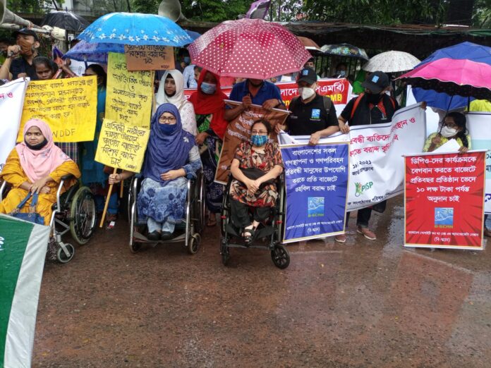 এবারের ২০২১-২২ অর্থ বছরের বাজেটে সামাজিক সুরক্ষা খাতে প্রতিবন্ধী মানুষকে সম্পূর্ণ উপেক্ষা করা হয়েছে বলে মানববন্ধনে আগত বক্তরা দাবি করেন। তারা জানান প্রতিবন্ধী মানুষের সংগঠনসমূহ পরিকল্পনা মন্ত্রণালয়ের সাথে একাধিক ওয়েবিনার, সুনির্দিষ্ট সুপারিশমালা দেয়া সত্ত্বেও তার একটিও কেন আমলে নেয়া হয় নি।